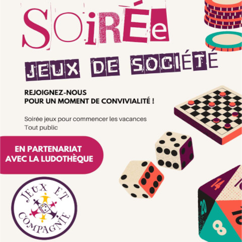 Les soirées jeux reprennent le jeudi 4 septembre 2025 et se termineront cette année le vendredi 12 juin 2026.