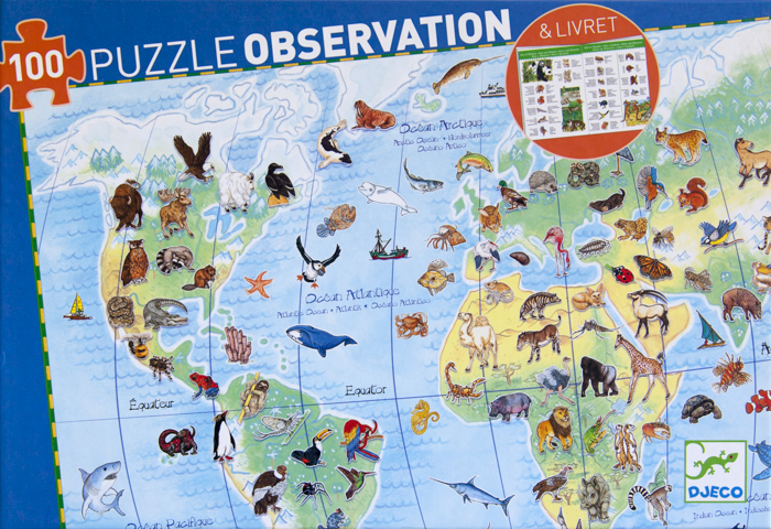 Un puzzle de 200 pièces représentant la mappemonde et la localisation des gros animaux.