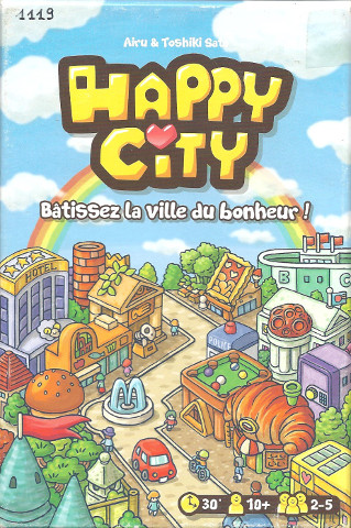 Happy City est un jeu de société pour 2 à 5 joueurs. Le but du jeu est de créer la ville la plus heureuse. Pour ce faire, les joueurs doivent construire des maisons, des commerces et des lieux de loi...