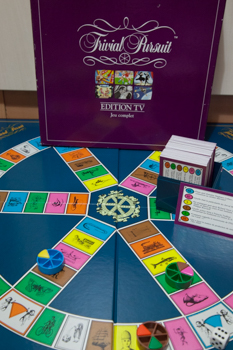 Une variante du célèbre trivial pursuit. Un jeu de question où se déplacer sur le plateau permet de choisir son thème. Pour gagner il faut répondre à 6 questions sur 6 thèmes différents liés à la télé...