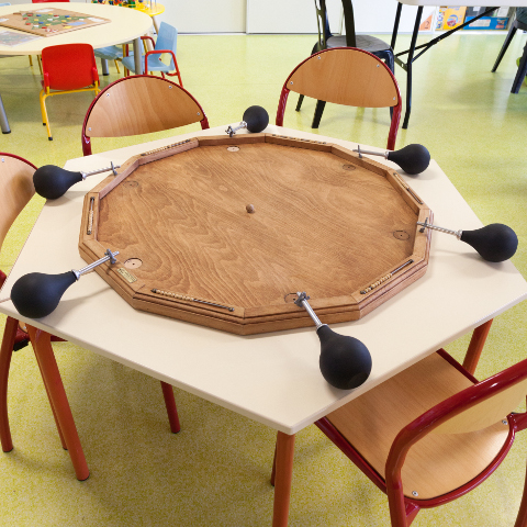 Ce jeu allie stratégie, vitesse, puissance et compétition dans une ambiance agréable. A l'aide du frappeur, chaque joueur doit envoyer son palet dans le but de l'adversaire.