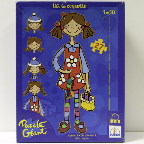Un grand baril contenant un puzzle grand format de 40 pièces en bois.