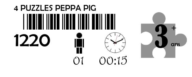 4 puzzles de 12, 16, 20 et 24 pièces de peppa pig.