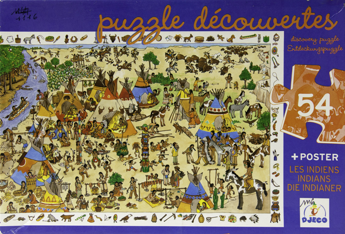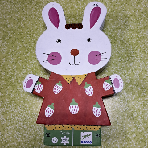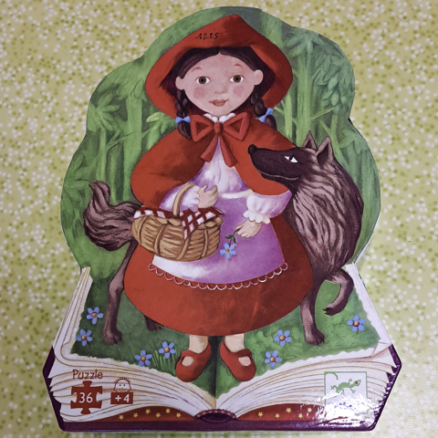 Un puzzle dans un boîte en forme de petit chaperon rouge.