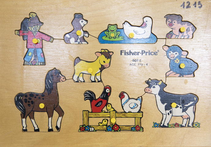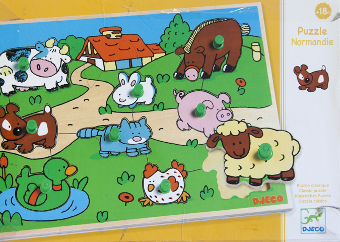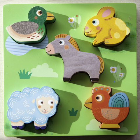 1 planche dans laquelle s'encastre 5 animaux en bois.