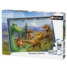 Un puzzle de 30 pièces représentant Arlo avec les dynosaures.
