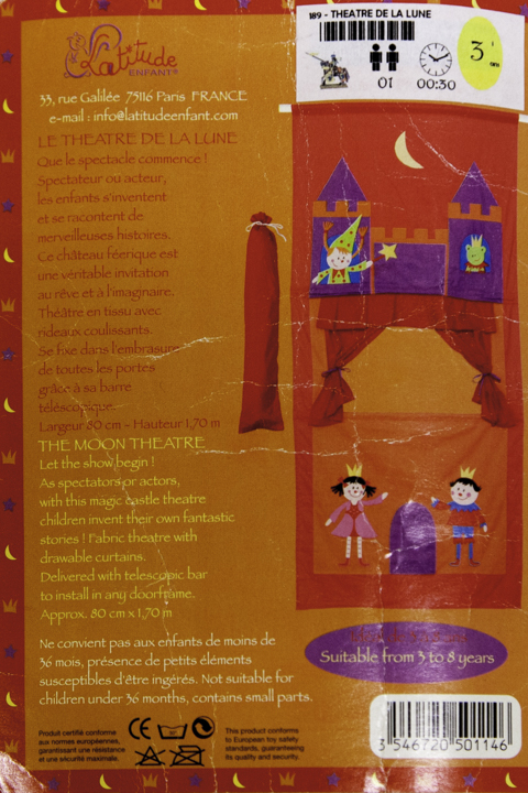 Un théâtre de tissu pour faire des représentations de marionnettes (non fournies).