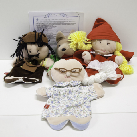 4 marionnettes pour raconter l'histoire du petit chaperon rouge.
