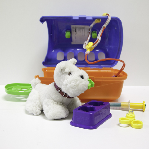 Tout l'attirail pour jouer au vétérinaire dans une mallette.