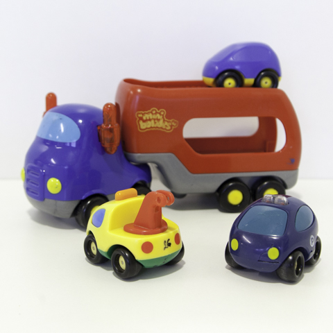1 train, 1 voiture de police, 1 camion remorque et des voitures pour imaginer les véhicules en ville.