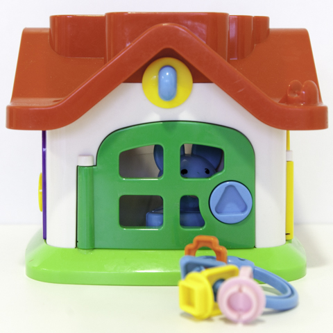Une maison avec formes d’animaux et des clés de même couleur pour découvrir les formes et les imbriquer.