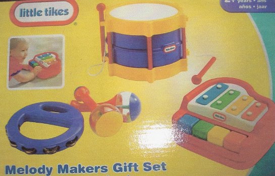 Produire des sons avec un tambour, 1 piano, 2 maracas, 1 cymbale.
