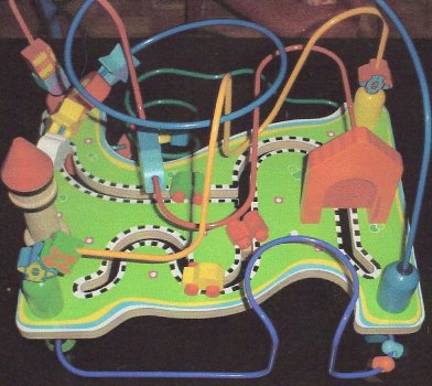 Le but pour l’enfant est de faire parcourir aux objets (étoiles, billes...) les chemins de couleur qui sont des tiges de métal courbes pour les mener à l’autre bout.