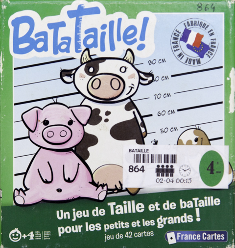 Le classique jeu de Bataille : chacun retourne sa carte et la plus forte emporte le lot de carte. Celui qui a toutes les cartes à la fin de la partie a gagné.