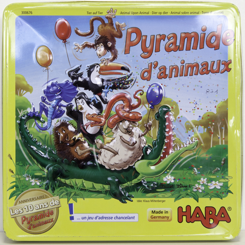 Les joueurs doivent empiler les animaux sur le crocodile pour former une pyramide sans les faire tomber.
